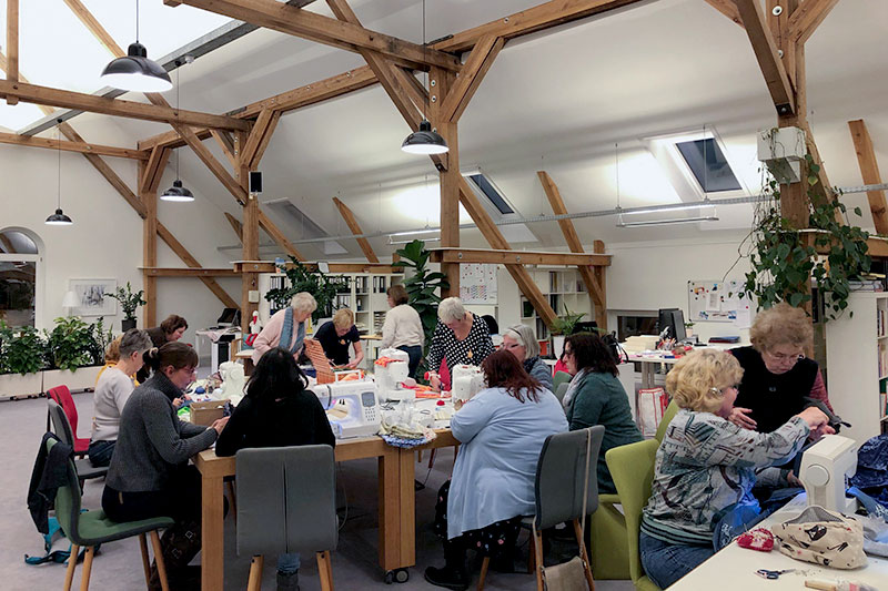 Wir laden Sie zum gemeinsamen Nähen ein! Hier kann man seine Kreativität ausleben und in angenehmer Atmosphäre unter Gleichgesinnten, mit gegenseitiger Hilfe und Unterstützung dem Alltag entfliehen. Egal ob Anfänger oder Fortgeschrittener, ob jung oder alt, was zählt sind gute Laune und Spaß an Näharbeiten. Es darf natürlich auch gestrickt, gestickt und gehäkelt werden! Wenn möglich bitte mitbringen: Nähmaschine, eventuell Verlängerungskabel, Schnittmuster, Stoffe, Garne – alles was man zum Nähen benötigt. 3 Nähmaschinen, Bügelstation, Schneidetisch u.v.m. sind vorhanden.